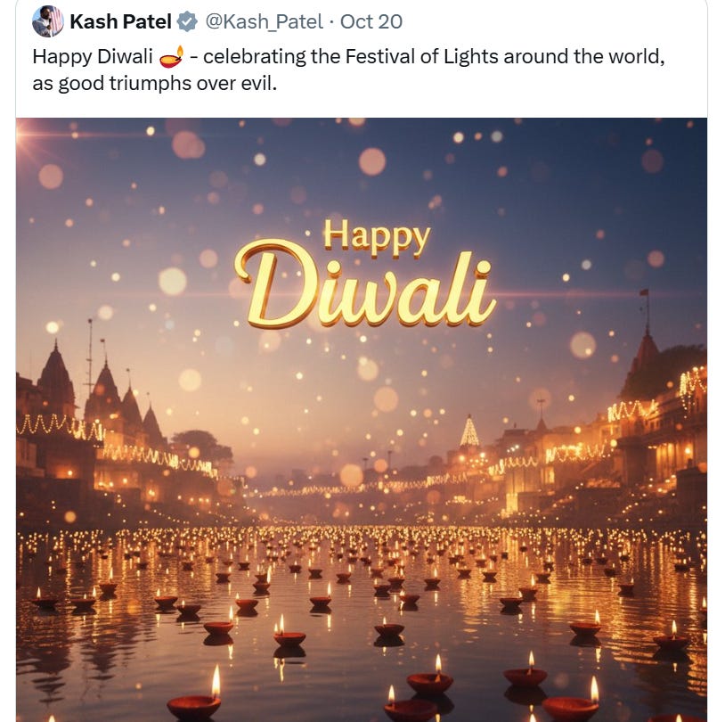 And in the midst of this, Kash Patel took MAGA heat for a well-meaning AI-designed tweet:
