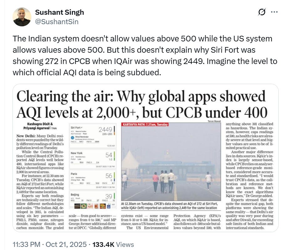 But be serious: Sushant Singh of Yale suspects that while pollution figures from north India are always shocking, what we see after the numbers after intense governmental massaging, even pummelling.