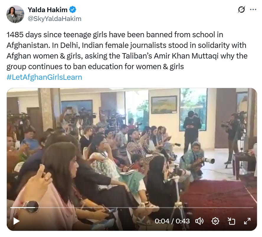 Taliban foreign minister Amir Khan Muttaqi lit the fuse by disinviting women journalists from his press conference in the Afghan Embassy. Bad move, because Indian media, for all its many and diverse faults, has phalanxes of women journalists in important positions. The Indian government, which failed to support them, got tarred and feathered. Indian male reporters were also pilloried for failing to walk out in solidarity. A second press conference was called to repair the damage, where Muttaqi, in fluent Hindustani, said that women’s education is not haram, but simply deferred until his supreme leader Hibatullah Akhundzada issues an order.